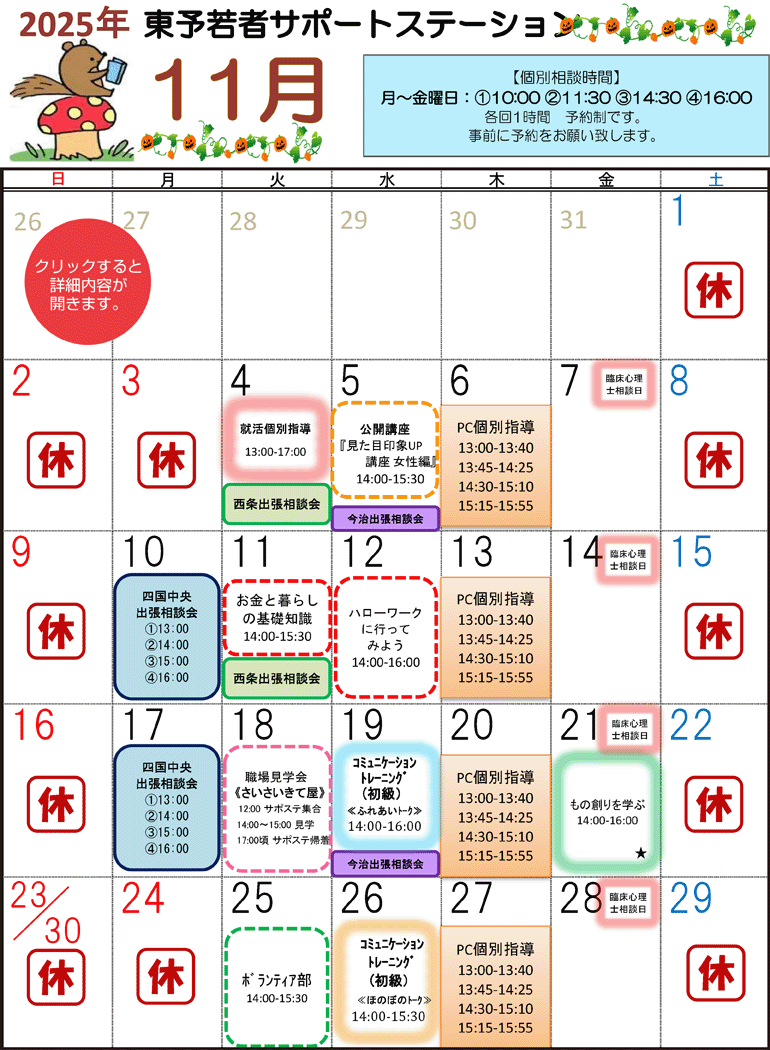 2025年11月 セミナーカレンダー 印刷はこちら