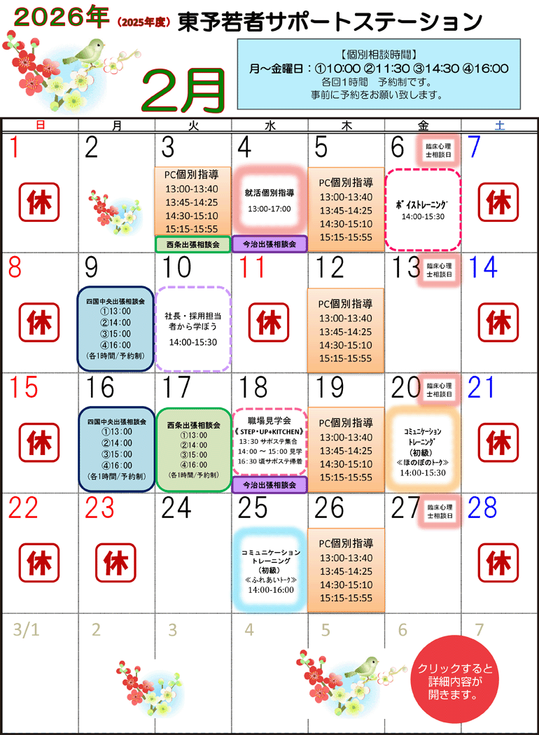 2026年2月 セミナーカレンダー 印刷はこちら